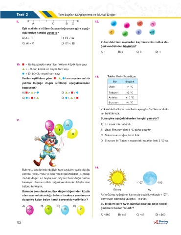 Test-2 Tam Sayıları Karşılaştırma ve Mutlak Değer