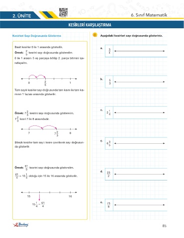 Tam sayılı kesirler sayı doğrusunda tam kısmı ile tam kıs-