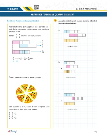 Örnek: Şekildeki pizza 6 eş dilime ayrılmıştır. + =