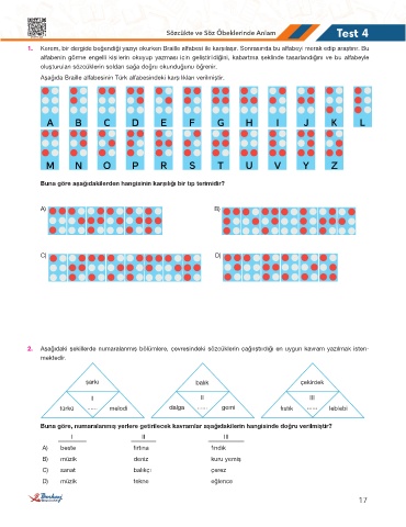 1. Kerem, bir dergide beğendiği yazıyı okurken Braille alfabesi ile karşılaşır. Sonrasında bu alfabeyi merak edip araştırır. Bu