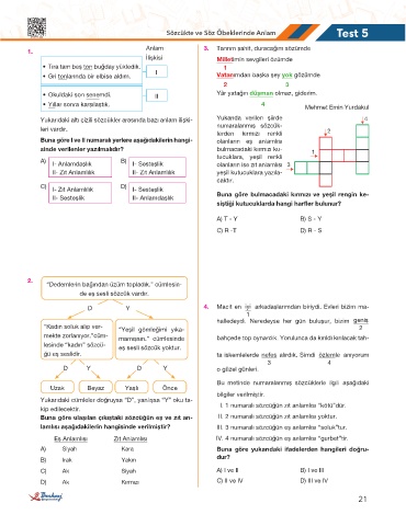 Buna göre ulaşılan çıkıştaki sözcüğün eş ve zıt an- II. 2 numaralı sözcüğün zıt anlamlısı yoktur.