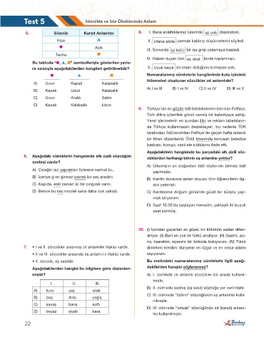 Test 5 Sözcükte ve Söz Öbeklerinde Anlam