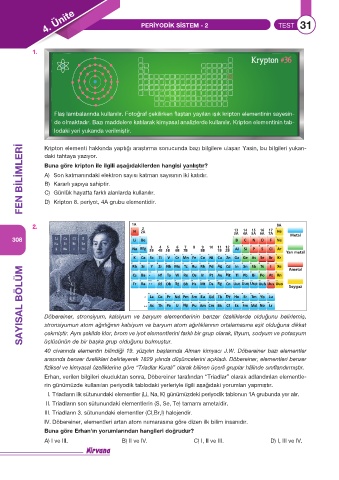 4. Ünite PERİYODİK SİSTEM - 2 TEST 31