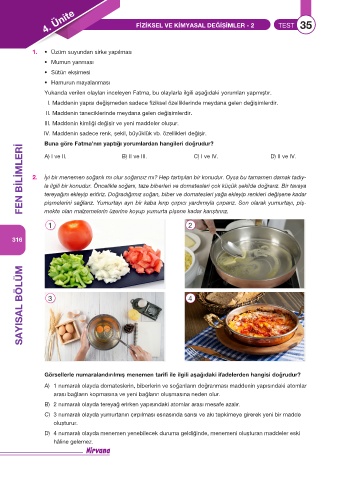4. Ünite FİZİKSEL VE KİMYASAL DEĞİŞİMLER - 2 TEST 35