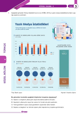 1. Aşağıdaki görselde Türkiye İstatistik Kurumunun (TÜİK), 2018 yılı yazılı medya istatistiklerine ilişkin yap-