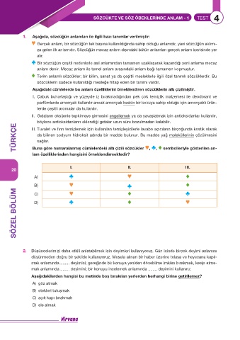 SÖZCÜKTE VE SÖZ ÖBEKLERİNDE ANLAM - 1 TEST 4