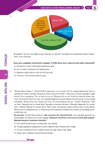 SÖZCÜKTE VE SÖZ ÖBEKLERİNDE ANLAM - 2 TEST 5