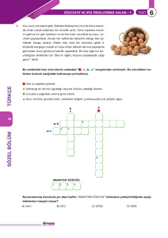 SÖZCÜKTE VE SÖZ ÖBEKLERİNDE ANLAM – 3 TEST 6