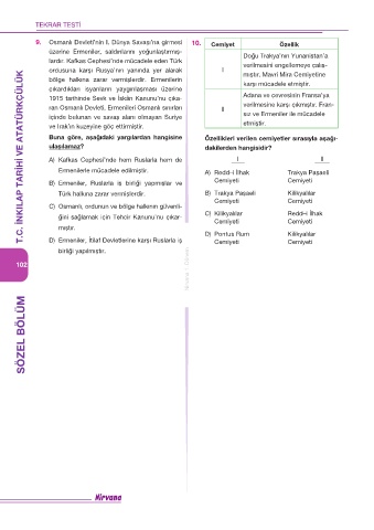 9. Osmanlı Devleti’nin I. Dünya Savaşı’na girmesi 10. Cemiyet Özellik