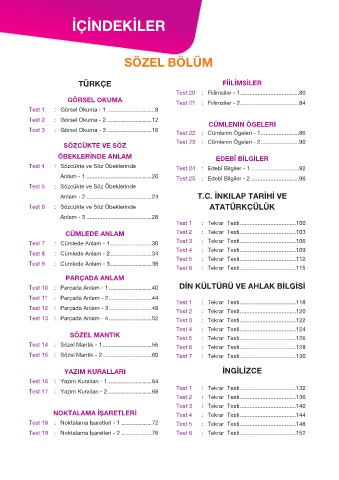 Test 15 : Sözel Mantık - 2 ...............................60 Test 7 : Tekrar Testi ...................................130
