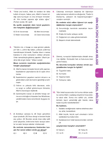 5. “Onlar (mü’minler), Allah ile beraber bir ilaha 8. Çalışmayı sevmeyen başarısız bir öğrenciye