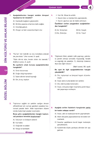 124 A) Dinin korunması Nirvana 1. Dönem Bu ayet ile ilgili aşağıdakilerden hangisi