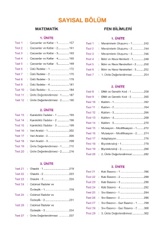 Test 1 : Çarpanlar ve Katlar - 1 ..............157 Test 1 : Mevsimlerin Oluşumu - 1 ...............242