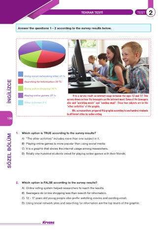 SÖZEL BÖLÜM B) Playing online games is more popular than using social media.