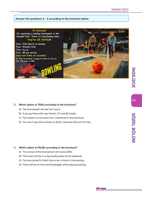 D) You won’t pay extra money to drinks, because they are for free. SÖZEL BÖLÜM