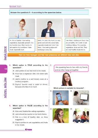 SÖZEL BÖLÜM D) Sophia’ favorite meal is salad at dinner, Nirvana 1. Dönem A) Which picture is suitable for Amanda?