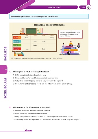SÖZEL BÖLÜM D) Fiona never reads shopping books but she often reads books about fantasy.