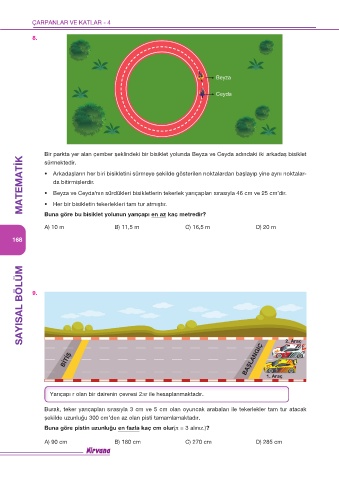 • Beyza ve Ceyda'nın sürdükleri bisikletlerin tekerlek yarıçapları sırasıyla 46 cm ve 25 cm’dir.