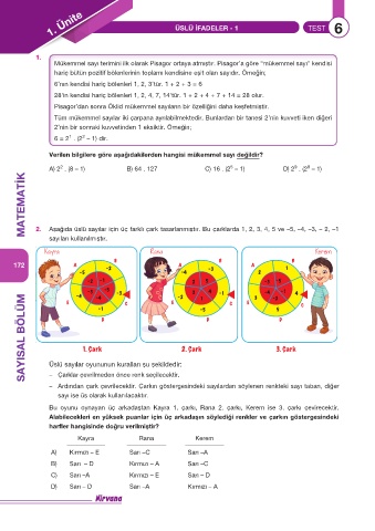 2. Aşağıda üslü sayılar için üç farklı çark tasarlanmıştır. Bu çarklarda 1, 2, 3, 4, 5 ve –5, –4, –3, – 2, –1