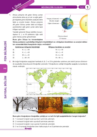 1. Ünite MEVSİMLERİN OLUŞUMU - 1 TEST 1