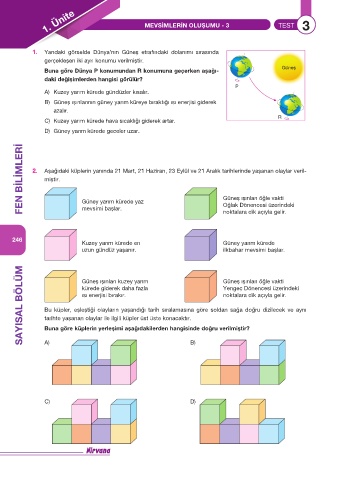 FEN BİLİMLERİ 2. Aşağıdaki küplerin yanında 21 Mart, 21 Haziran, 23 Eylül ve 21 Aralık tarihlerinde yaşanan olaylar veril- FEN BİLİMLERİ