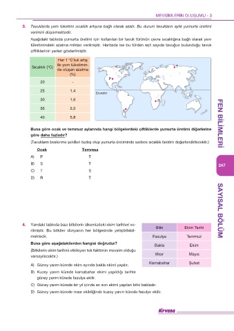 SAYISAL BÖLÜM 4. Yandaki tabloda bazı bitkilerin ülkemizdeki ekim tarihleri ve- SAYISAL BÖLÜM