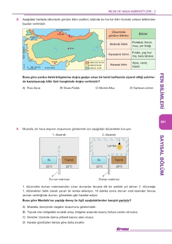 3. Aşağıdaki haritada ülkemizde görülen iklim çeşitleri, tabloda ise her bir iklim türünde yetişen bitkilerden