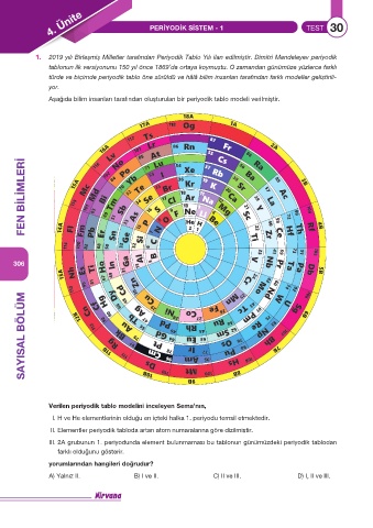 4. Ünite PERİYODİK SİSTEM - 1 TEST 30